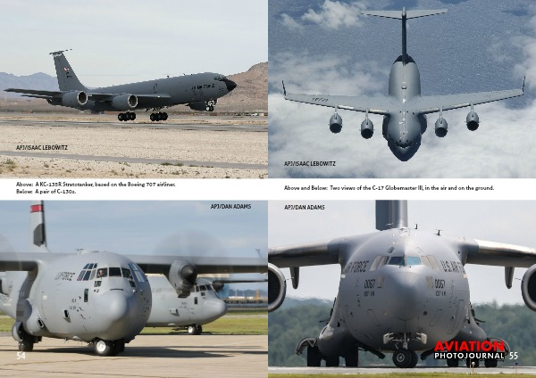 Above and Below: Two views of the C-17 Globemaster III, in the air and on the ground.