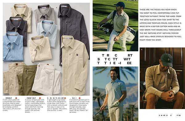 THESE ARE THE PIECES YOU WEAR WHEN YOU WANT TO FEEL COMFORTABLE AND PUT TOGETHER WITHOUT TRYING TOO HARD. FROM THE LONG-SLEEVE HIGH TIDE SHIRT TO THE UPPERS AND TRESTLES POLOS, EACH STYLE IS MADE WITH A SOFTER COTTON HAND AND AN EASY DRAPE THAT WEARS WELL THROUGHOUT THE DAY. NOTHING STIFF. NOTHING FORCED. JUST WELL-MADE STAPLES DESIGNED TO FEEL RIGHT FROM THE START.