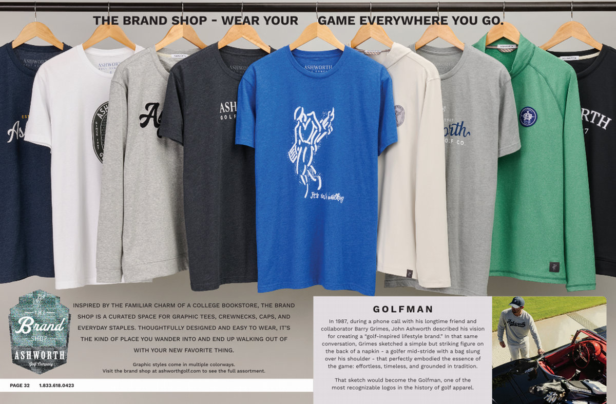 Graphic styles come in multiple colorways. Visit the brand shop at ashworthgolf. com to see the full assortment.