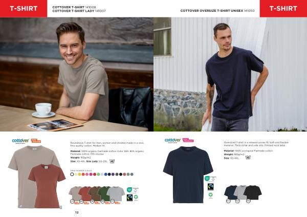 Roundneck T-shirt for men , women and children made in a cool , fine quality cotton . Modern fit .