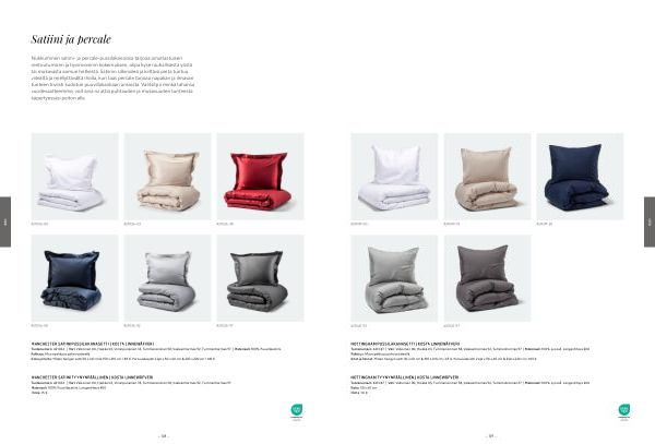 MANCHESTER SATIINIPUSSILAKANASETTI | KOSTA LINNEWÄFVERI Tuotenumero: 421036 | Väri: Valkoinen 00, Hiekka 03, Viininpunainen 38, Tummansininen 58, Vaaleanharmaa 92, Tummanharmaa 97 | Materiaali: 100 % Puuvillasatiini. Pakkaus: Muovipakkaus pahvivyötteellä Koko ja hinta: Yhden hengen setti 50 x 60 cm & 150 x 210 cm / 89 €. Parivuodesetti 2 kpl x 50 x 60 cm & 230 x 220 cm / 149 €