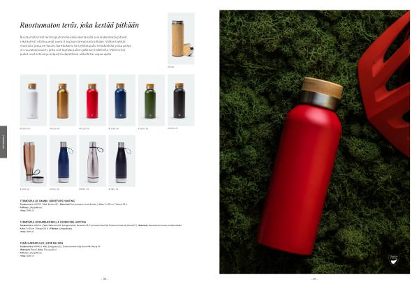 Ruostumattomat termospullomme kaksinkertaisella seinärakenteella pitävät sekä kylmät että kuumat juomat sopivan lämpöisinä pitkään. Valitse tyylikäs muotoilu, jossa on kaunis bambukansi tai tyylikäs pullo teräskorkilla, jossa pohja on ruuvattavissa irti, jotta voit täyttää pullon jäillä tai hedelmillä. Molemmat pullot ovat käteviä ja helposti kuljetettavia retkellä tai vapaa-ajalla.