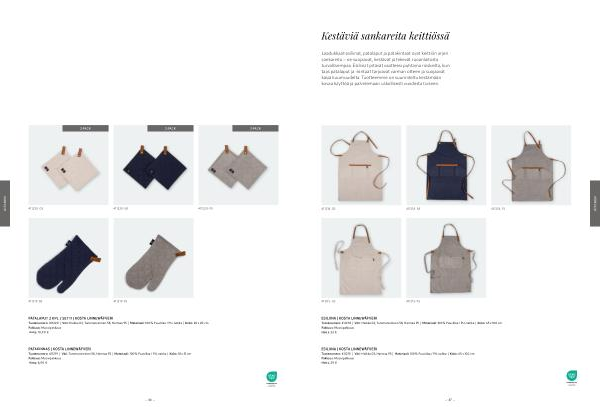 Laadukkaat esiliinat, patalaput ja patakintaat ovat keittiön arjen sankareita – ne suojaavat, kestävät ja tekevät ruoanlaitosta turvallisempaa. Esiliinat pitävät vaatteesi puhtaina roiskeilta, kun taas patalaput ja-kintaat tarjoavat varman otteen ja suojaavat käsiä kuumuudelta. Tuotteemme on suunniteltu kestämään kovaa käyttöä ja palvelemaan uskollisesti vuodesta toiseen.