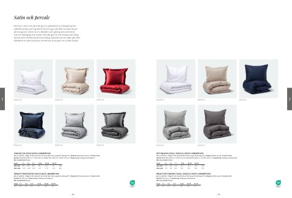 Att sova i satin och percale ger en upplevelse av avkoppling och välbefinnande, vare sig det är för en lugn natt eller en skön stund på morgonen. Satin har en silkeslen och glansig yta som känns sval och behaglig mot huden. Percale ger en mer krispig och luftig känsla med sitt tätt vävda bomullstyg. Oavsett vad du väljer ger våra bädddset en skön känsla av renhet när du kryper ner under täcket.