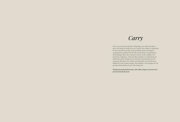 Vårt carry sortiment erbjuder mångsidiga och slitstarka väskor, påsar och bagar för både resa och vardag. Våra väskor är designade för att möta alla dina behov, från praktiska bagar till eleganta vardagsväskor, perfekta för allt från weekendresor till gymbesök. Våra kylbagar håller dina matvaror fräscha under utflykter och picknickar. Tygkassar i olika storlekar erbjuder en miljövänlig och stilfull lösning för shopping och ärenden med perfekta ytor för branding. Dessutom har vi återvunna filtväskor som kombinerar hållbarhet med modern design. Vår kollektion är framtagen för att ge dig funktionalitet och stil i alla situationer.