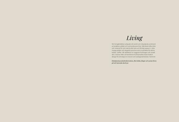 Vår livingkollektion erbjuder ett varmt och inbjudande sortiment av ljuslyktor, plädar och värmande ponchos. Välj bland olika stilar och material för att matcha ditt hem och låt dig svepas in i våra mysiga plädar och eleganta ponchos som är perfekta för sköna kvällar i soffan. Vår kollektion är noggrant framtagen och utvald där vi strävar efter att kombinera funktionalitet med modern design för att skapa en trivsam och avslappnad känsla i hemmet.