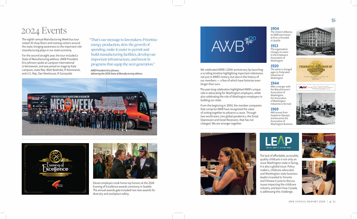 The year-long celebration highlighted AWB’ s unique role in advocating for Washington employers, while also celebrating the role of Washington employers in building our state.