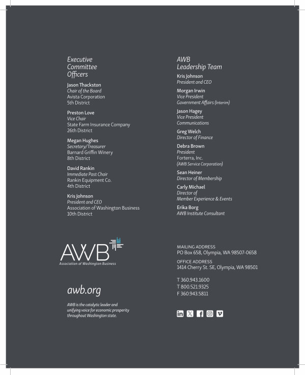 AWB is the catalytic leader and unifying voice for economic prosperity throughout Washington state.