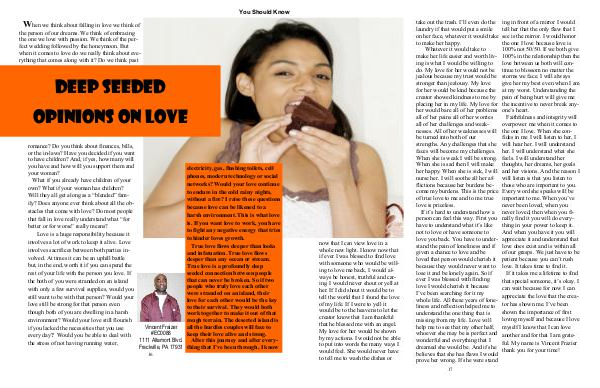 If it takes me a lifetime to find that special someone, it’ s okay. I can wait because for now I can appreciate the love that the creator has shown me. I’ ve been shown the importance of first loving myself and because I love myself I know that I can love another and for that I am grateful. My name is Vincent Frazier thank you for your time!