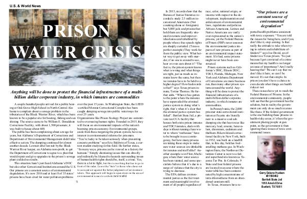 This situation hasn’ t just faced Alabama’ s DOC but also other Correctional Institutions around the U. S. Our prisons are a constant source of environmental degradation. It’ s now 2016 and at least 8 of 33 states’ prisons have been cited for water pollution problems