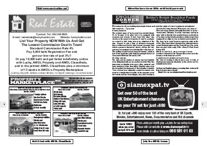 Visit www.awolonline.net Contact: Tel.: 082 298 0500 E-mail: realestate@luckyhuahin.com Website: luckyhuahin.com List Your Property NOW With Us And Get The Lowest Commission Deal In Town! Standard Commission Rate 4% Pay 5,000 baht Registration Fee and get our low rate of just 3%!! Or pay 10,000 baht and get listed indefinitely online with Lucky, AWOL Property and AWOL Classifieds, and in the printed AWOL Classifieds plus a minimum of 13 weeks in AWOL’s Property Marketplace (Listing only with Sellers contact details, no Agent viewings, no commission) Call 082 298 0500 or 081 649 8361 Property Email realestate@luckyhuahin.com or property@awolonline.net Marketplace new pool villas in south hua hin Price: from 3.9 m baht for 2 bed to 6.8 m baht for 3 bed Ref No. 032553 7 design options Sun Roof Decks Easy access to town Full Air Con Packs Clubhouse 24 hour security 6 gated community with great facilities Price: from 2.7m baht Ref No. 032583 Underground utilities Private pool 8km from town 2, 3 or 4 bedrooms Living: from 91 sqm Land: from 300 sqm stunning L shaped borfai bungalow Price: 6.9 m baht 3 Bedrooms 4 Bathrooms European kitchen Outdoor Thai kitchen Living: 430 sqm. Land: 884 sqm. or 2,304 sqm. for 10.9m baht Ref No.: 032537 peaceful 3 bed villa in s/w hua hin Price: 9.3 m baht Sell it fast with AWOL Classifieds Ref No. 032582 Euro fitted kitchen Private pool Convenient location 3 bedrooms Separate Annexe Land: 600 sqm