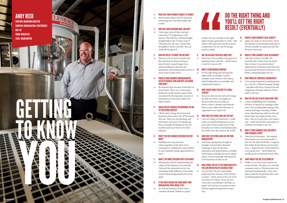 A: I am very happy at Senstronics. I could easily see myself retiring here in a few years after we have made it one of the best places to work on the business park, the North-East, the country, the world!