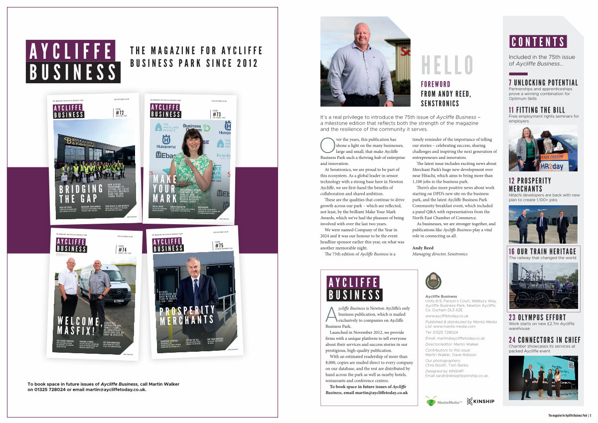 THE MAGAZINE FOR AYCLIFFE BUSINESS PARK SINCE 2012