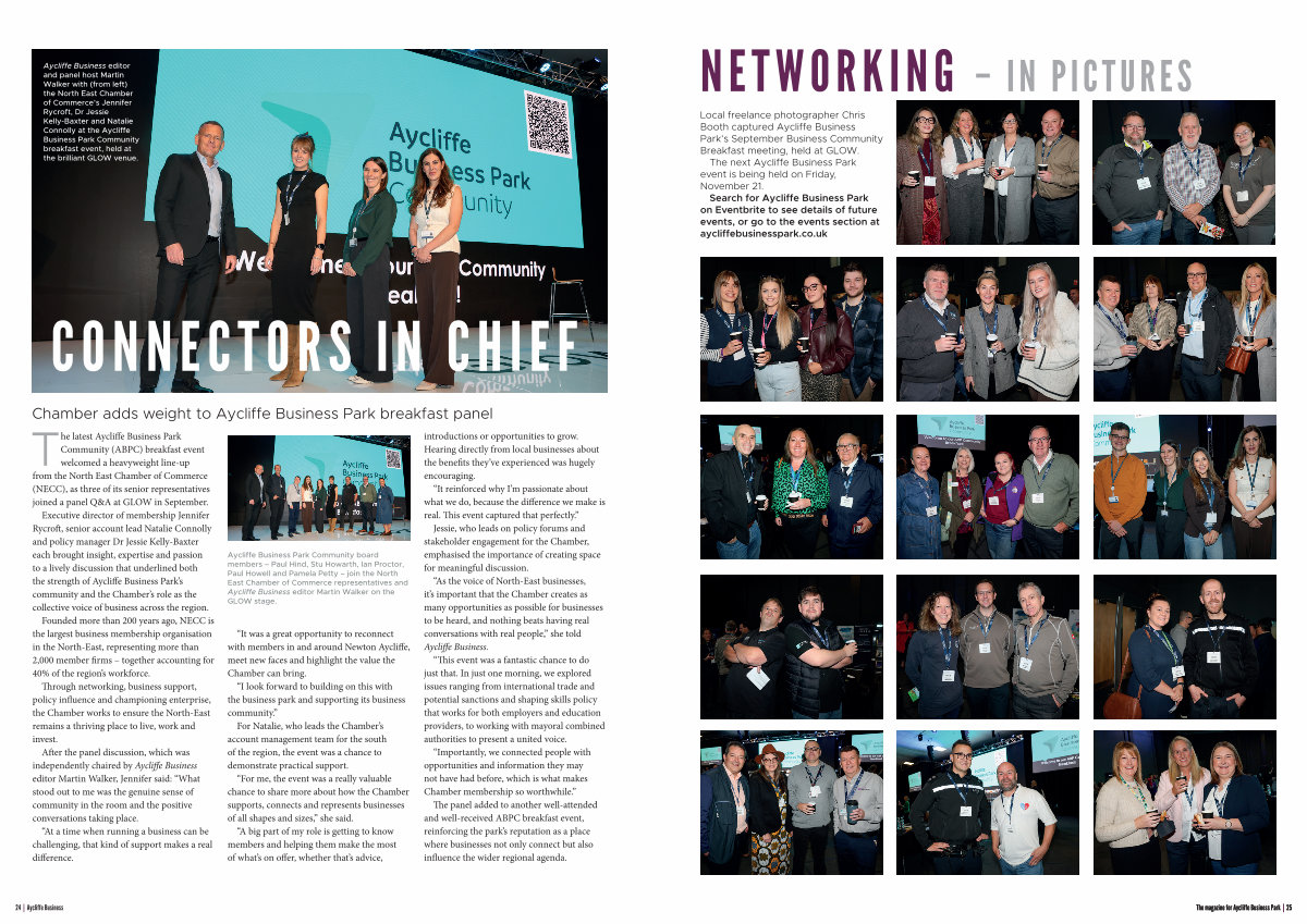 The latest Aycliffe Business Park Community( ABPC) breakfast event welcomed a heavyweight line-up from the North East Chamber of Commerce( NECC), as three of its senior representatives joined a panel Q & A at GLOW in September.