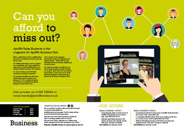 With a readership of 8,000, Aycliffe Today Business is circulated around the park six times a year.