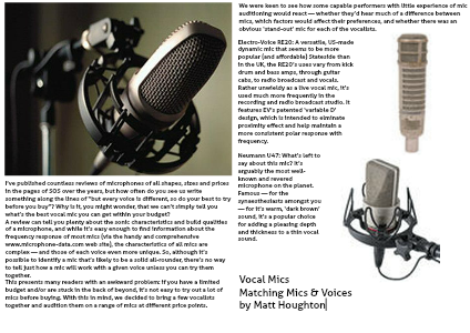 We were keen to see how some capable performers with little experience of mic auditioning would react — whether they’d hear much of a difference between mics, which factors would affect their preferences, and whether there was an obvious ‘stand-out’ mic for each of the vocalists.
