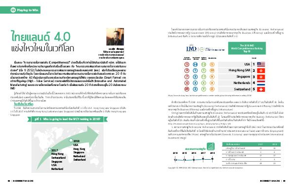ปี 2018 อันดับความสามารถในการแข่งขันของประเทศระดับโลกโดยอันดับที่ 1-3 คือ USA Hong Kong และ Singapore (อันดับ