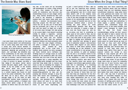 I had seen them once before at The Hop near the Canary Wharf, but unfortunately had to leave early been that it felt like a sickly and thick mucus wanted to protrude out of my mouth and over some bystander swaying and grooving to the music , but last night my attention was focus dominantly on the band and what a band it was. Sat in the confines of The Owl pub in Rodley I had the severe need to get bombed been that I hadn't touched a drop of alcohol in weeks , but after a few swigs of the amber nectar which tasted like pure angels quiff I was soon drawn in by the power of the Bonnie Mac Blues Band and there sheer dedication to the Blues which I felt at to a certain degree had fallen on deaf ears in the Leeds community. The section we were sat in had a small , but big enough stage to fit the band on with instruments behind them plastered on the wall, several guitars, a trumpet and many others while a sign at the back painted on which read out Live music at the owl. As the band set up including Jeff Waddington on Guitar, Craig Jackson on bass, John Sharpe on drums, Ian Scaife on harmonica and the slick and mesmerising vocals of lead singer Sheila Mac. They started off with the first half of Blues Is My Buisness a signature number that I had heard them play once before, I believe the necessary reason why they played the first half was to check the set up and see if there were any EQ problems , yet it was all on the ball and the music so tight not a whiff of air could seep through, this was going to be a good night I told myself, vacating briefly to smoke a cigarette. Quickly making my way back inside I was glad to see the band had not started performing yet been that the audience members handed out there presents been that it was the lead singers birthday , but after a barrage of thank you's to everybody that showed up they progressed into As The Crow Flies a number made popular by Rory Gallagher yet there version had a veritable and striking touch of Chicago blues as Scaife howled on his harmonica with the dirty, distorted and rich tone of the mic which was plugged into a Laney amplifier, the band played with strength and the sheer sene that they knew how to handle the blues as well as knowing the lengths of which it could be taken. As Waddington stretched and ran his fingers along his Ibanez fretboard I discovered what a mesmerising guitarist he was, yet his playing was diverse enough to play the blues with valour and consistency , but also an avenue to add in different subtexts and speeded lines that many other would not dare to do been that some people have a very tight view of blues as just been depressing and nothing more which Sheila commented on later that evening. This in all manner of tribute was the defining essence of blues, almost as if it had been snatched from a late night Chicago club and then placed here at the Owl with all the spirit and heartfelt groove of the blues, needless to say I was in heaven been that I have spent most of my life cherishing and listening to The Blues and understanding all the worry, all the joy and the misplaced love or lost love that it entails so naturally seeing a band like this has kept me aware that the blues is not dead despite what others think. Now been that my memory is somewhat of a disaster I have forgotten which order the songs were performed in , but my mind will probably jump start as it always does and I will remember something so spectacular and feel like an idiot that I had forgotten it. The band soon slid into Big Mama Thorntons Hound Dog with a swing that somewhat was misplaced from The King of Rock N Rolls version, then through To Love Me like A man which Sheila dedicated to one of the audiences members, Jimi Hendrix' Road House which I found exciting been that this might be a showcase for Waddington's guitar playing , but my attention from that was toppled over by the sheer sting and force of the harmonica. Soon the band played The Doors Roadhouse Blues which had tell tale signs of the original version and the Status Quo version which I found delightful. Another highlight of the evening was Waddington and Mac written number The Flood a profound and mature blus number that proved the worth of this band and necessary they are as the passionate and dedicated Mac revealed was been released as a single. The set rolled on into a magnificent encore including The House Is A Ricking by SRV which I was excited to discover was in the set been that Stevie Ray Vaughn is a hero of mine, Walking By Myself and Robert Johnson's Sweet Home Chicago which had the majority of the audience (including myself) singing along to. To be frank this was the most striking and lasting session UI ever seen from a Leeds based band and there dedication to wards the music not at least the amazing rhythm section of Craig Jackson and John Sharp. Yet writing this and trying desperately to add in the excitement of the group and the sheer force of there performance into this short piece about them cannot compare to seeing the group themselves, so naturally it doesn't matter what I say the main reason for this is that if you live in Leeds and ever get a chance to see them live then do so, you will not be disappointed by this true and powerful entity that should be equally placed along with other blues men such as Little Walter and Muddy Waters.