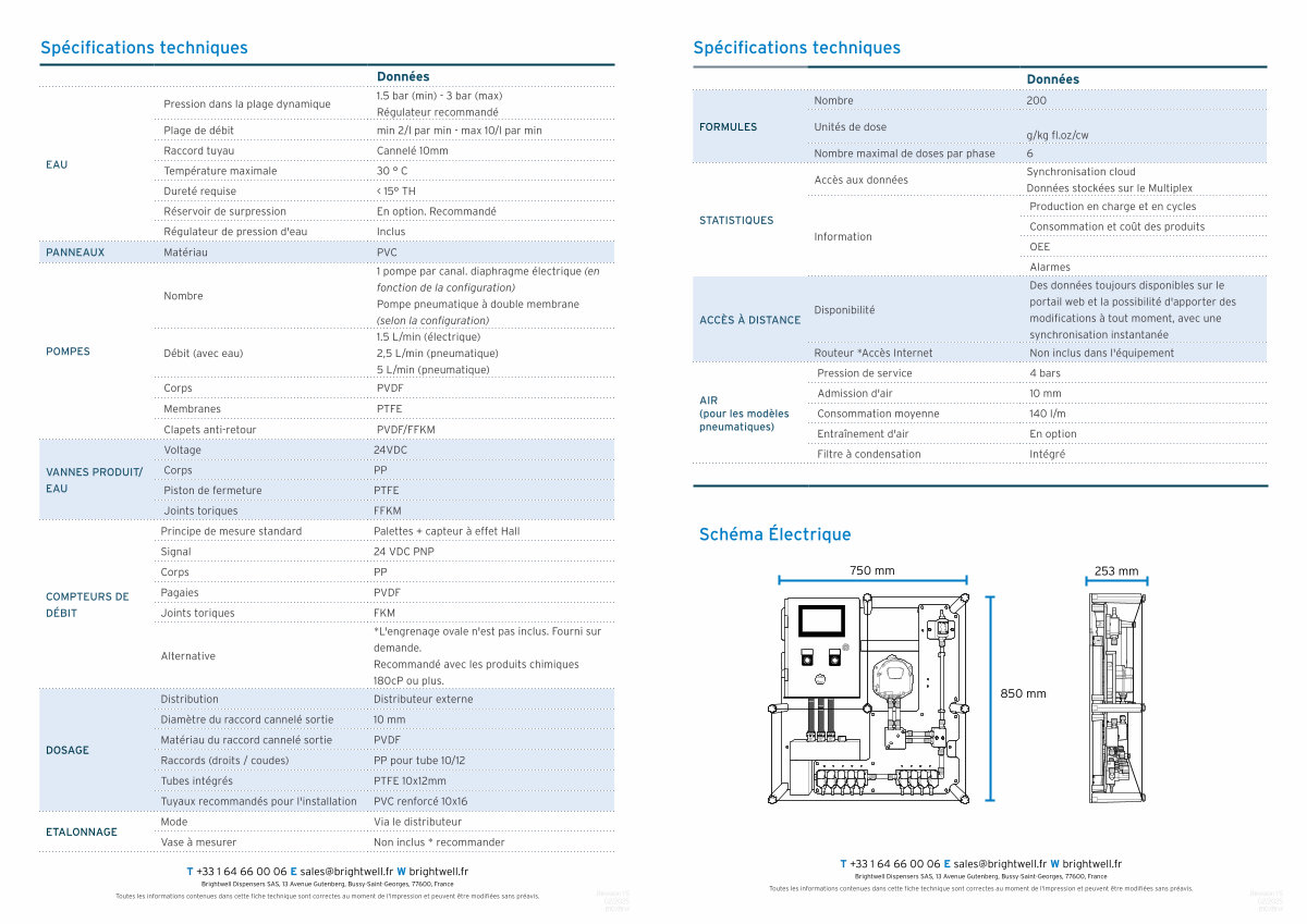 T + 33 1 64 66 00 06 E sales @ brightwell . fr W brightwell . fr Brightwell Dispensers SAS , 13 Avenue Gutenberg , Bussy-Saint-Georges , 77600 , France Toutes les informations contenues dans cette fiche technique sont correctes au moment de l ' impression et peuvent être modifiées sans préavis .