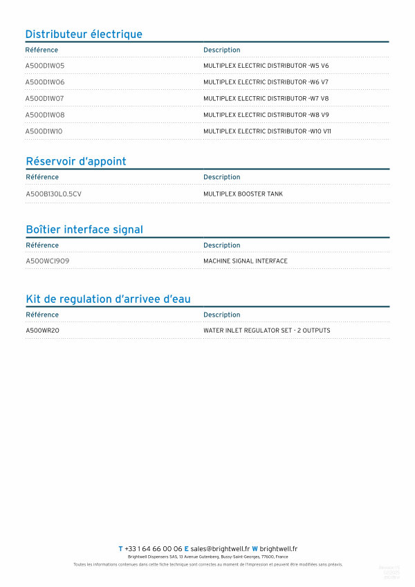 T + 33 1 64 66 00 06 E sales @ brightwell . fr W brightwell . fr Brightwell Dispensers SAS , 13 Avenue Gutenberg , Bussy-Saint-Georges , 77600 , France Toutes les informations contenues dans cette fiche technique sont correctes au moment de l ' impression et peuvent être modifiées sans préavis .