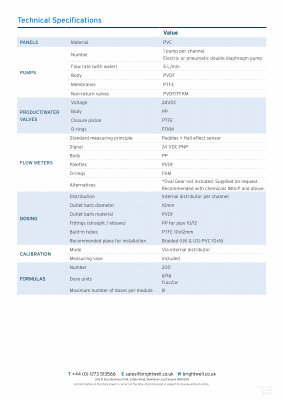 T + 44 ( 0 ) 1273 513566 E sales @ brightwell . co . uk W brightwell . co . uk Unit 9 , Euro Business Park , Estate Road , Newhaven , East Sussex BN9 0DQ All information in this data sheet is correct at the time of printing and is subject to change without notice .