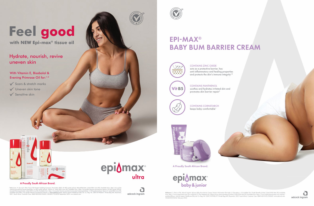 Reference: 1. Data on file, Adcock Ingram. Epimax Baby Bum Barrier Cream, Product Information File Index. 2. Staughton J. 5 Incredible Zinc Oxide Benefits [ online ]. [ cited 2024 Feb 20 ]; Available from: https:// www. organicfacts. net / zinc-oxide. html. 3. Tee-Melegrito RA. What to know about panthenol [ online ]. [ cited 2024 Feb 20 ]; Available from: https:// www. medicalnewstoday. com / articles / panthenol # uses. Adcock Ingram Healthcare( Pty) Ltd. Co. Reg. No. 2007 / 019928 / 07. Private Bag X69, Bryanston, 2021, South Africa. Customer Care: 0860 ADCOCK / 232625. www. adcock. com. 20240222103434. February 2024.