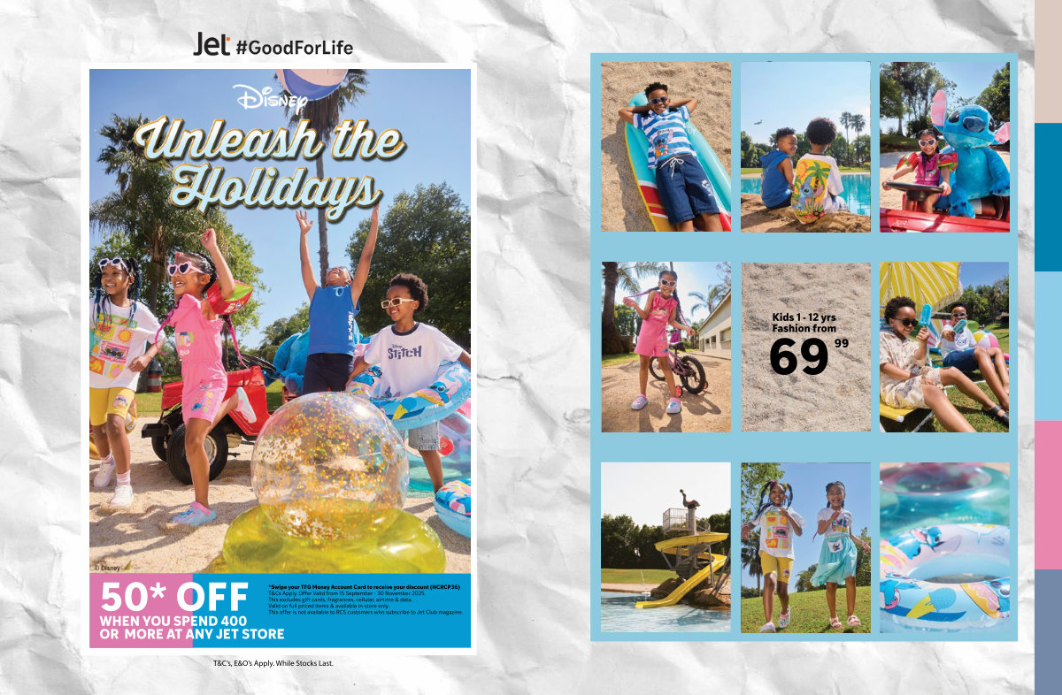 * Swipe your TFG Money Account Card to receive your discount( NCRCP36) T & Cs Apply. Offer Valid from 15 September- 30 November 2025. This excludes gift cards, fragrances, cellular, airtime & data. Valid on full priced items & available in-store only. This offer is not available to RCS customers who subscribe to Jet Club magazine.