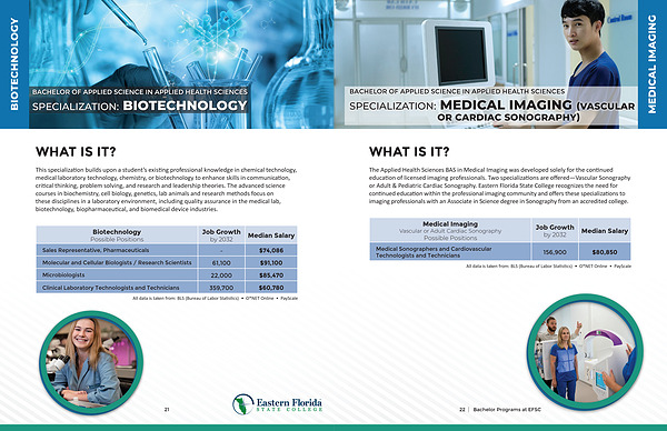 The Applied Health Sciences BAS in Medical Imaging was developed solely for the continued education of licensed imaging professionals. Two specializations are offered— Vascular Sonography or Adult & Pediatric Cardiac Sonography. Eastern Florida State College recognizes the need for continued education within the professional imaging community and offers these specializations to imaging professionals with an Associate in Science degree in Sonography from an accredited college.