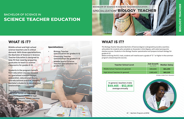 The Biology Teacher Education Bachelor of Science degree is designed to provide a seamless articulation for students who complete an Associate in Arts Degree, with select prerequisite elective courses. Students in the Biology Teacher specialization will prepare to teach biology for grades 6-12. Before entering the B. S. track, students will need to earn a grade ofโ C-โ or higher in the common program and prerequisite courses.