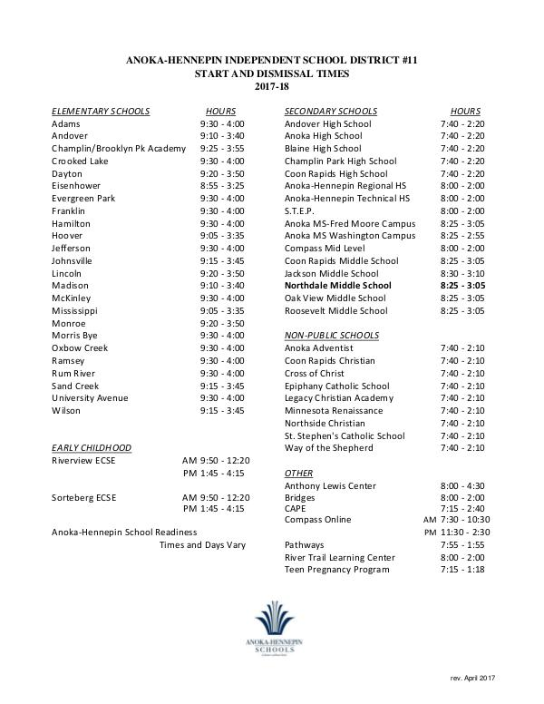 Back-to-school Start and dismissal times 2017-18