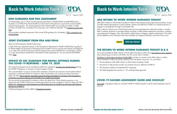 On Wednesday , June 3 , 2020 , the Pennsylvania Department of Health ( DOH ) issued REVISED Interim Guidance on COVID-19 for Dental Health Care Personnel in Pennsylvania as part of the commonwealth ’ s phased reopening plan . This revised guidance allows dental health care providers the ability to safely provide oral health care , including routine cleanings , and is effective statewide . This guidance can be read here .