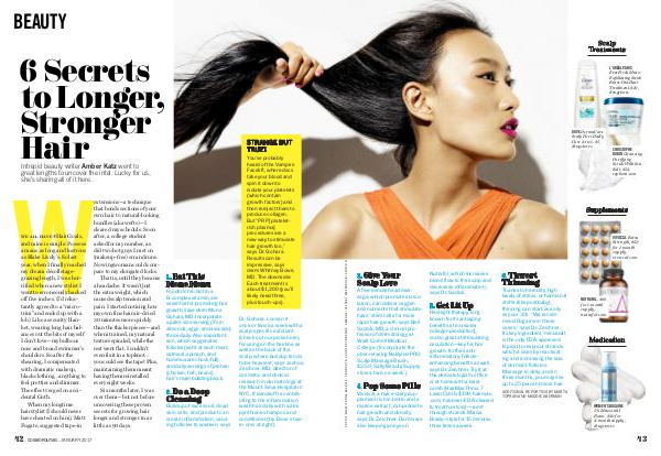 A five-minute head massage, which promotes circulation, can deliver oxygen and nutrients that stimulate hairs’ stem cells for more rapid hair growth, says Neil Sadick, MD, a clinical professor of dermatology at Weill Cornell Medical College.( Incorporate the Über-relaxing BaBylissPRO Scalp Massage Brush, $ 2.50, Sally Beauty Supply stores, twice a week.)