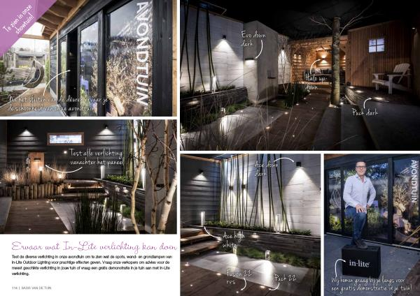 Test de diverse verlichting in onze avondtuin om te zien wat de spots , wand- en grondlampen van In-Lite Outdoor Lighting voor prachtige effecten geven . Vraag onze verkopers om advies voor de meest geschikte verlichting in jouw tuin of vraag een gratis demonstratie in je tuin aan met In-Lite verlichting .
