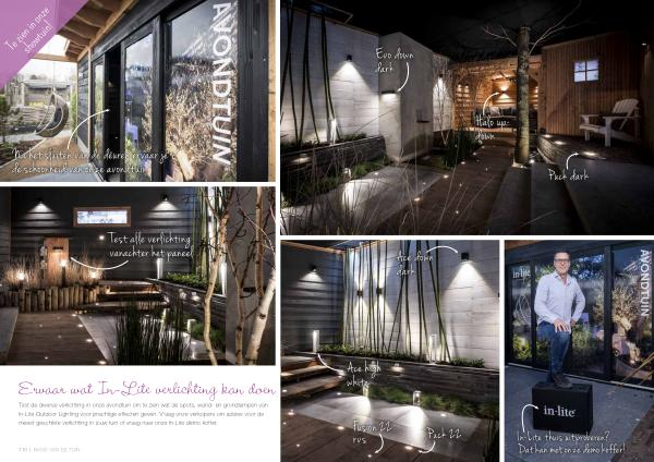 Test de diverse verlichting in onze avondtuin om te zien wat de spots , wand- en grondlampen van In-Lite Outdoor Lighting voor prachtige effecten geven . Vraag onze verkopers om advies voor de meest geschikte verlichting in jouw tuin of vraag naar onze In-Lite demo koffer .