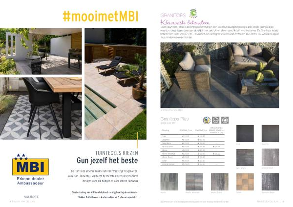 De tuin is de ultieme ruimte om van ‘ thuis zijn ’ te genieten . Jouw tuin . Jouw stijl . MBI biedt de meeste keuze uit exclusieve designs voor elk budget en voor iedere tuinwens .