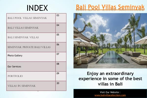 Bali Pool Villas Seminyak Enjoy an extraordinary experience in some of the best villas in Bali 3 Visit Our Website : www.balivillacollection.com