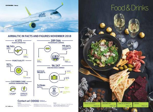 IN NUMBERS / January 136 / airBaltic.com MEALS & PLATES PAGE 137 SANDWICHES PAGE 139 SNACKS & SWEETS PAGE 141 DRINKS PAGE 144