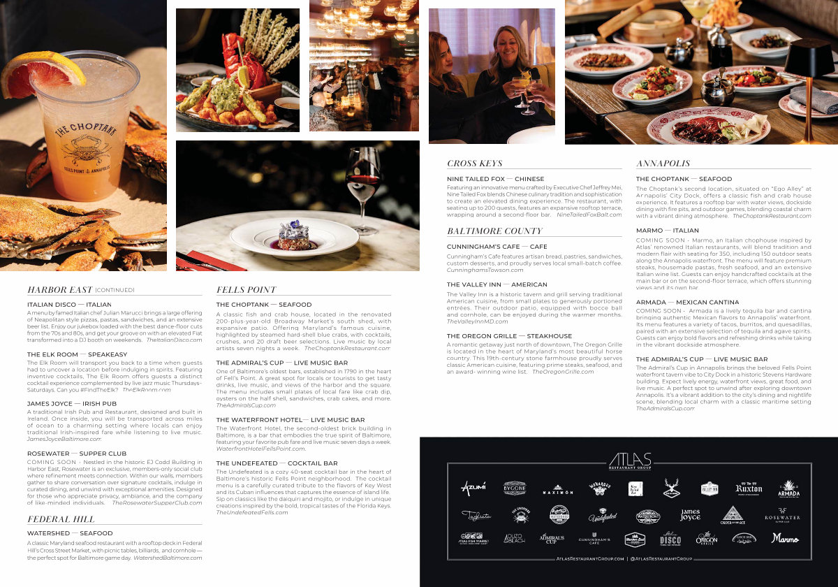 COMING SOON • Marmo, an Italian chophouse inspired by Atlas’ renowned Italian restaurants, will blend tradition and modern flair with seating for 350, including 150 outdoor seats along the Annapolis waterfront. The menu will feature premium steaks, housemade pastas, fresh seafood, and an extensive Italian wine list. Guests can enjoy handcrafted cocktails at the main bar or on the second-floor terrace, which offers stunning views and its own bar.