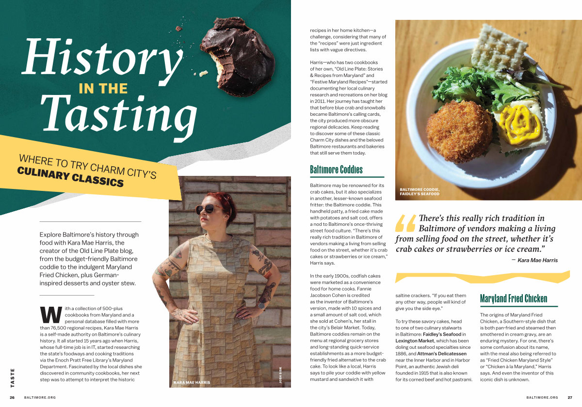 With a collection of 500-plus cookbooks from Maryland and a personal database filled with more than 76,500 regional recipes, Kara Mae Harris is a self-made authority on Baltimore’ s culinary history. It all started 15 years ago when Harris, whose full-time job is in IT, started researching the state’ s foodways and cooking traditions via the Enoch Pratt Free Library’ s Maryland Department. Fascinated by the local dishes she discovered in community cookbooks, her next step was to attempt to interpret the historic |