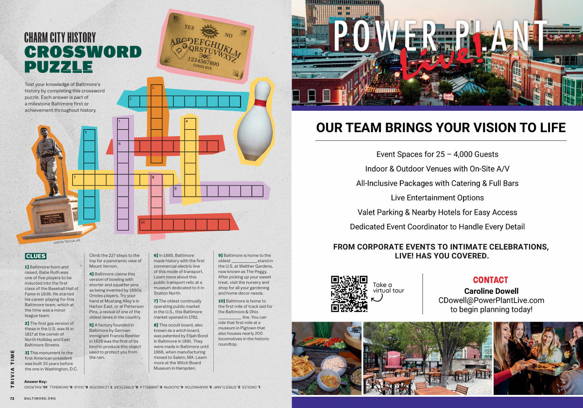 Test your knowledge of Baltimore’ s history by completing this crossword rd puzzle. Each answer is part of a milestone Baltimore first or achievement throughout hout history.