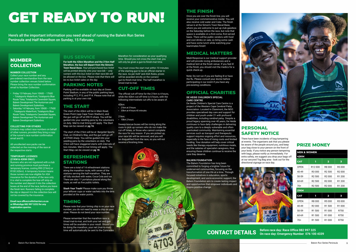 Before race day: Race Office 082 997 325 On race day: Emergency Number 076 100 4339