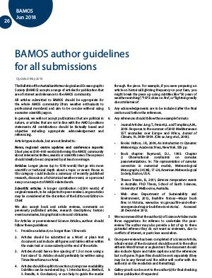 The Bulletin of the Australian Meteorological and Oceanographic Society( BAMOS) accepts a range of articles for publication that are of interest and relevance to the AMOS community.