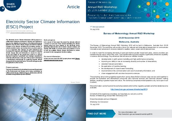 The Bureau of Meteorology Annual R&D Workshop 2019 will be held in Melbourne, Australia from 25-29
