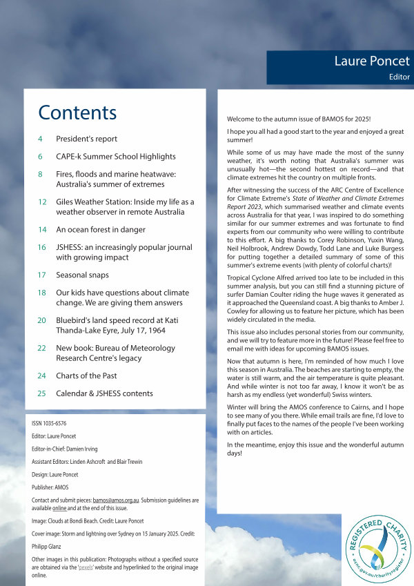 Image: Clouds at Bondi Beach. Credit: Laure Poncet Cover image: Storm and lightning over Sydney on 15 January 2025. Credit: Philipp Glanz