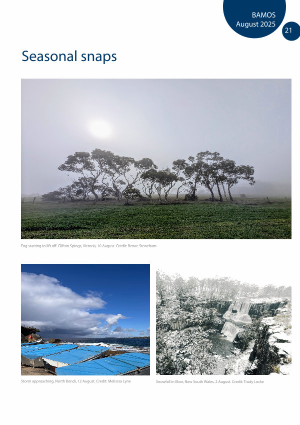 Storm approaching, North Bondi, 12 August. Credit: Melisssa Lyne Snowfall in Ebor, New South Wales, 2 August. Credit: Trudy Locke