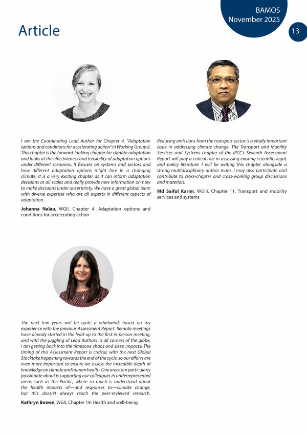 The next few years will be quite a whirlwind, based on my experience with the previous Assessment Report. Remote meetings have already started in the lead-up to the first in-person meeting, and with the juggling of Lead Authors in all corners of the globe, I am getting back into the timezone chaos and sleep impacts! The timing of this Assessment Report is critical, with the next Global Stocktake happening towards the end of the cycle, so our efforts are even more important to ensure we assess the incredible depth of knowledge on climate and human health. One area I am particularly passionate about is supporting our colleagues in underrepresented areas such as the Pacific, where so much is understood about the health impacts of— and responses to— climate change, but this doesn’ t always reach the peer-reviewed research.