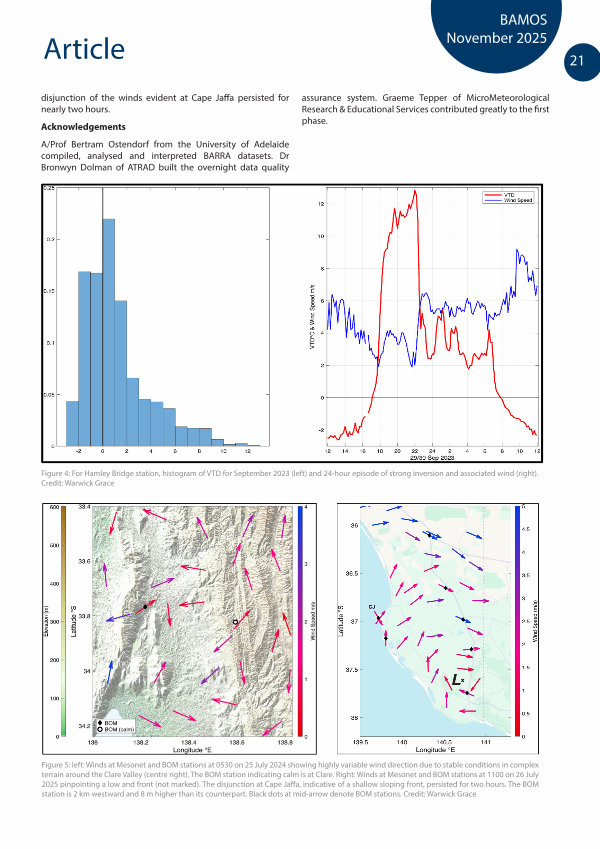 Figure 4: For Hamley Bridge station, histogram of VTD for September 2023( left) and 24-hour episode of strong inversion and associated wind( right). Credit: Warwick Grace