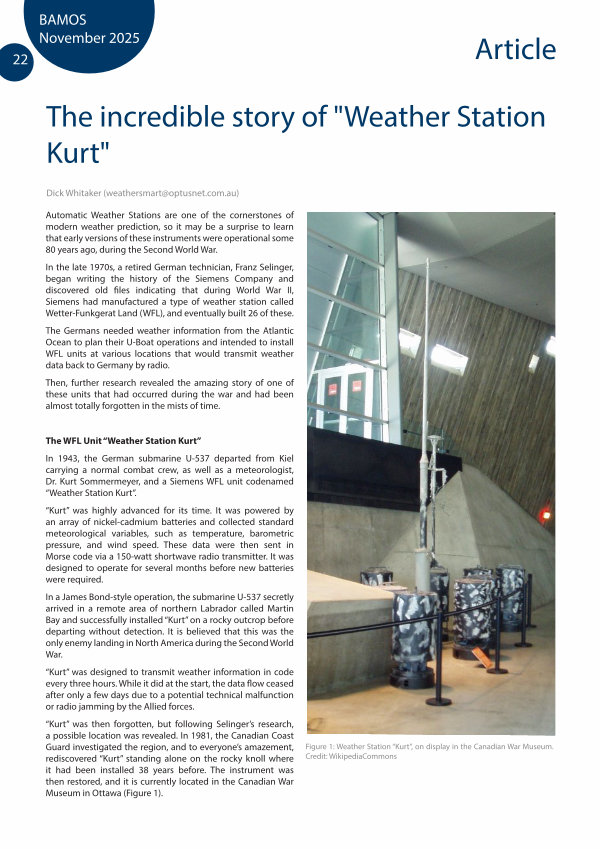 Automatic Weather Stations are one of the cornerstones of modern weather prediction, so it may be a surprise to learn that early versions of these instruments were operational some 80 years ago, during the Second World War.