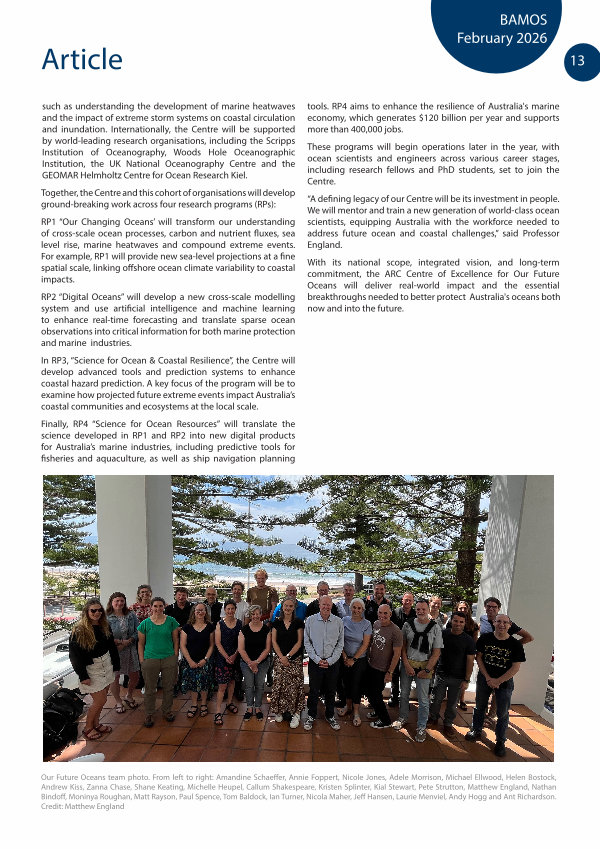 “ A defining legacy of our Centre will be its investment in people. We will mentor and train a new generation of world-class ocean scientists, equipping Australia with the workforce needed to address future ocean and coastal challenges,” said Professor England.