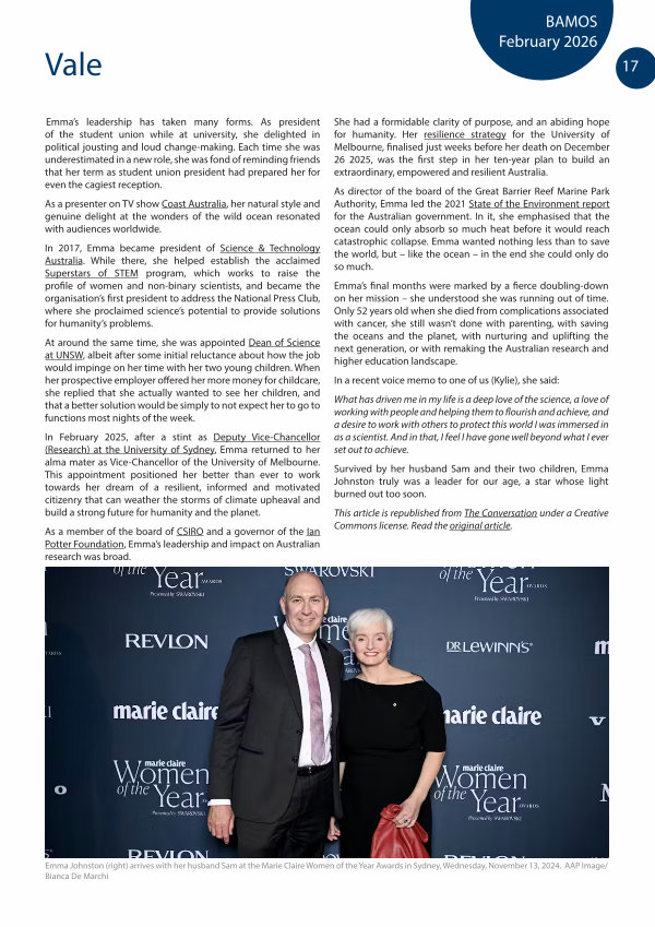 In February 2025, after a stint as Deputy Vice-Chancellor( Research) at the University of Sydney, Emma returned to her alma mater as Vice-Chancellor of the University of Melbourne. This appointment positioned her better than ever to work towards her dream of a resilient, informed and motivated citizenry that can weather the storms of climate upheaval and build a strong future for humanity and the planet.